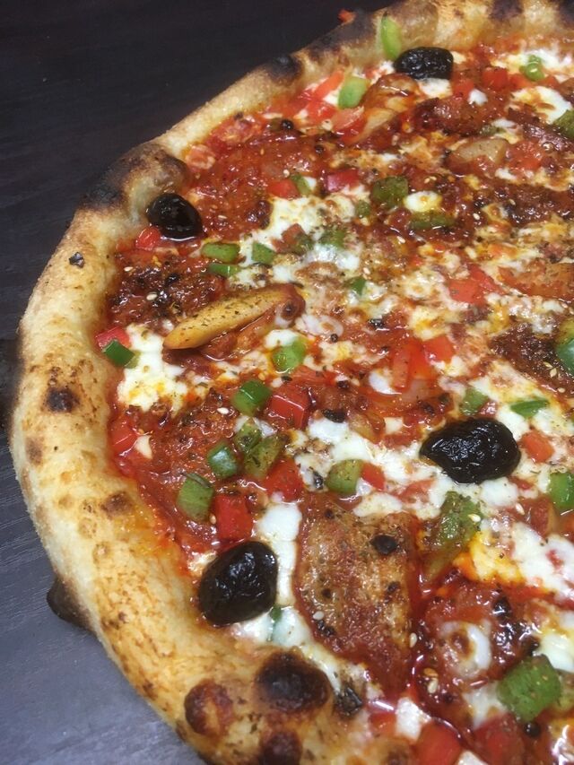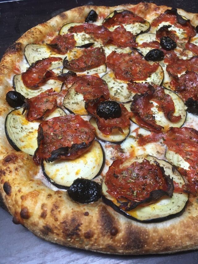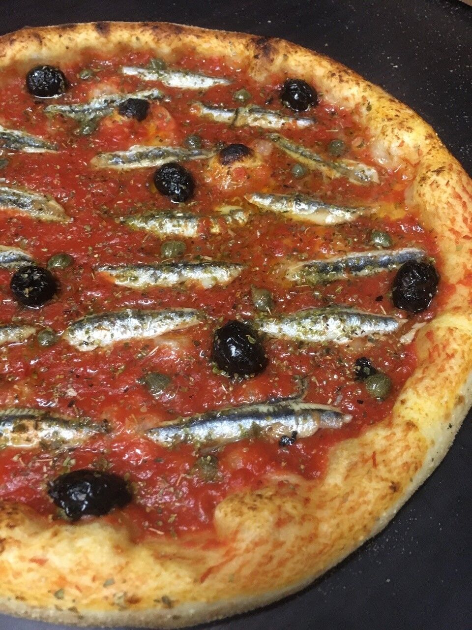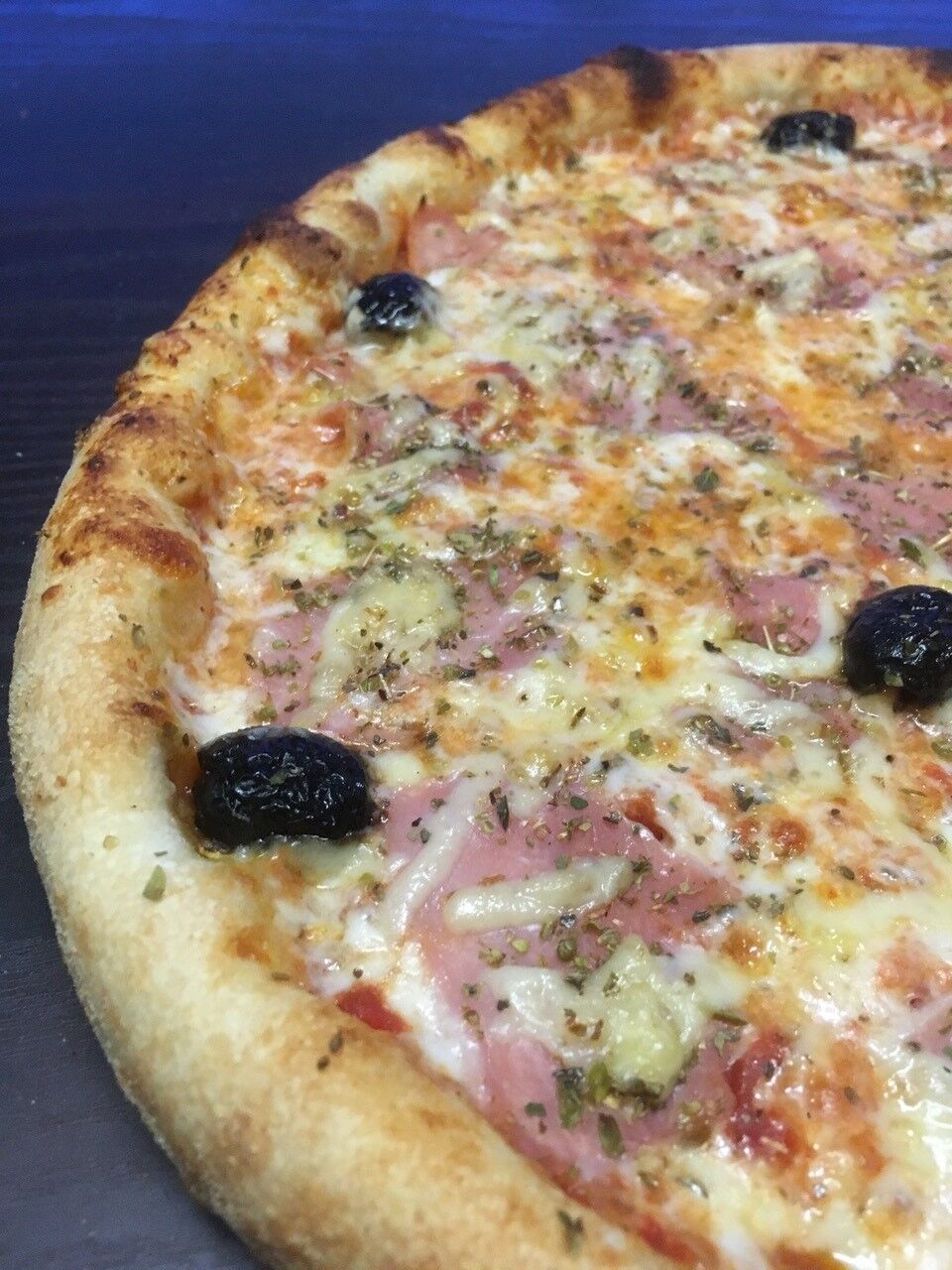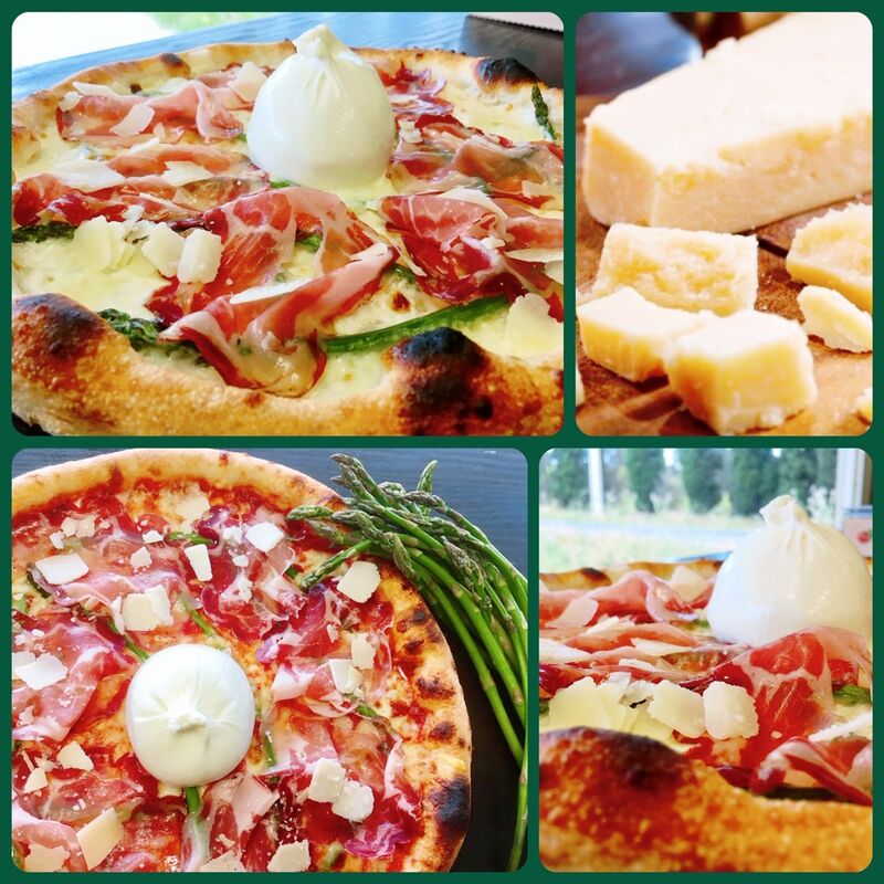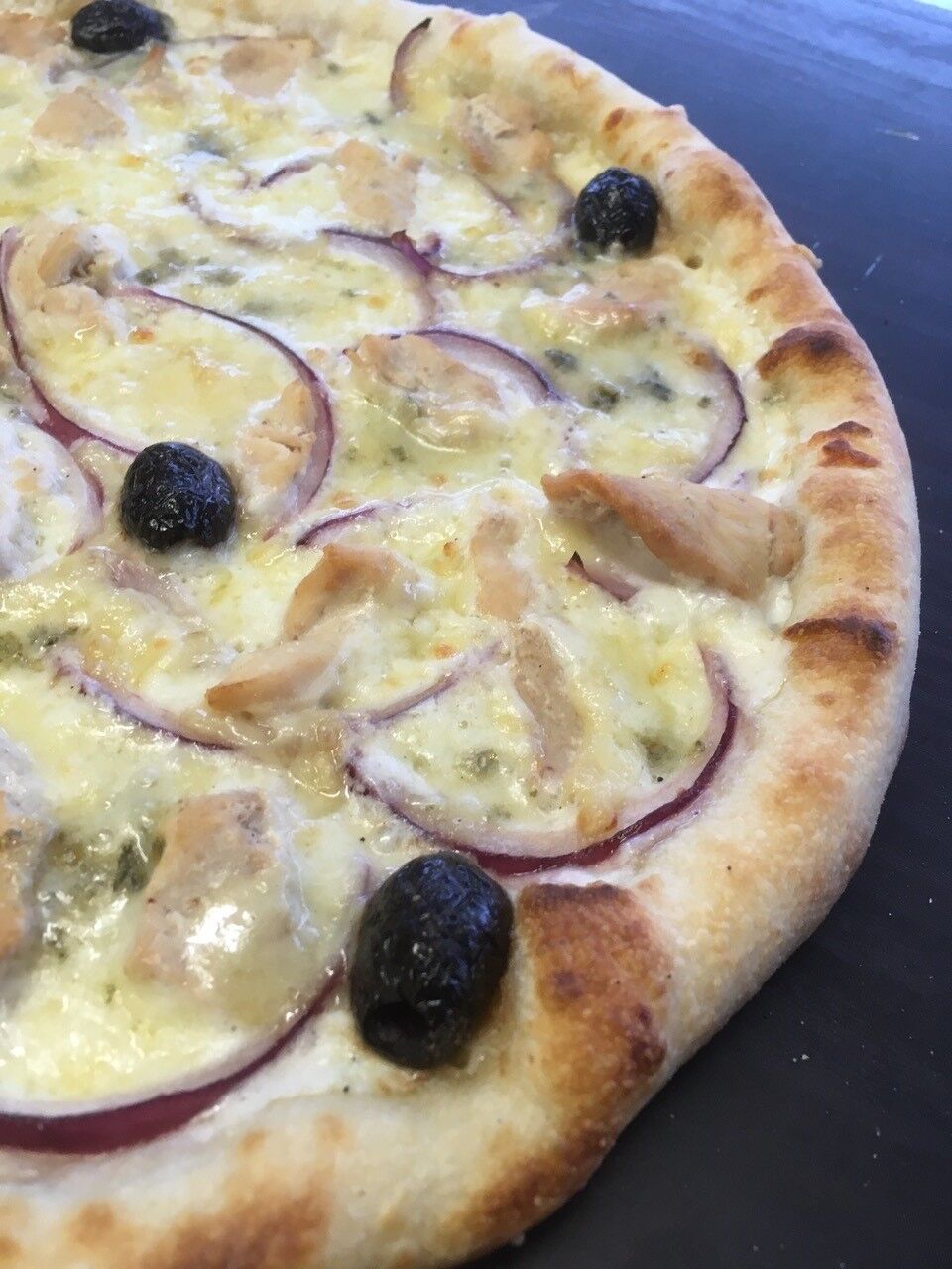 LA DAUPHINOISE Base tomate, crème fraîche aux cèpes, mozzarelle, raviole au comté, jambon cru
